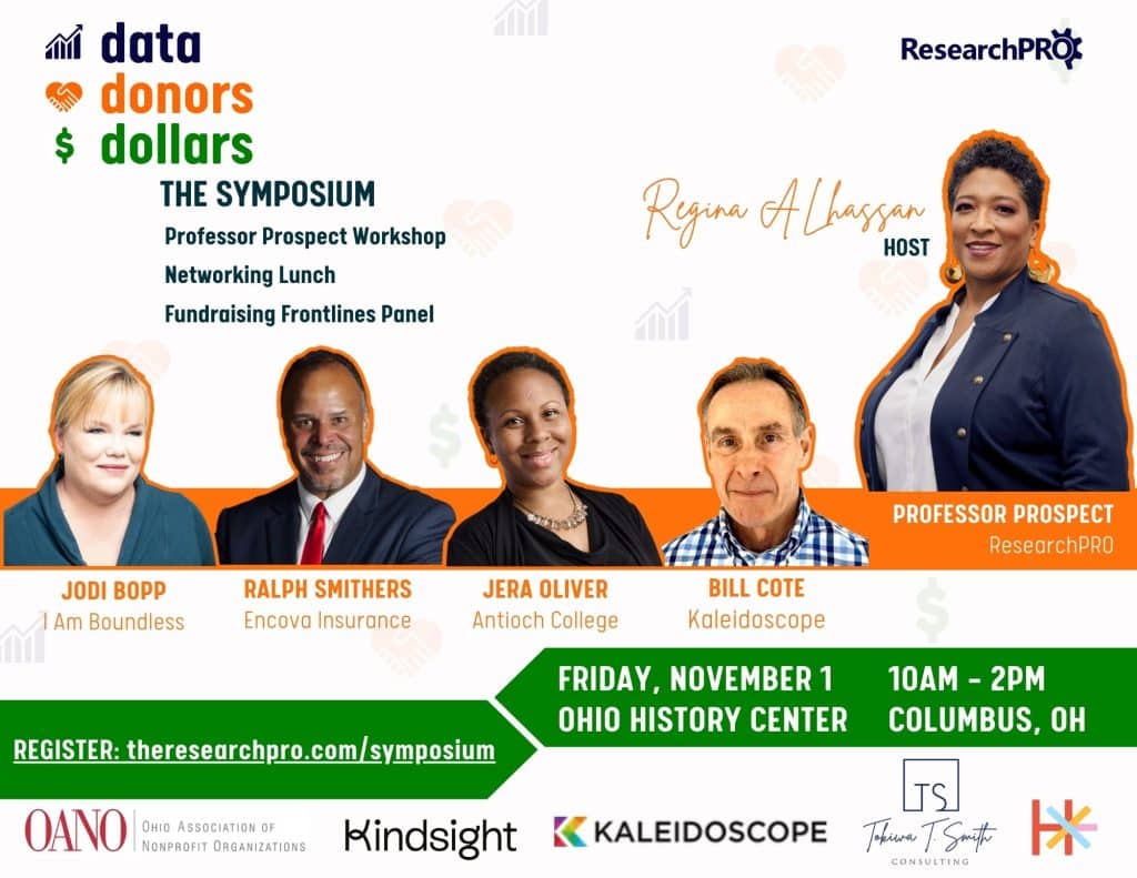 Join us for a transformative half-day event designed to empower nonprofit fundraising teams with the knowledge and tools needed to elevate their individual giving programs. ResearchPRO’s “Data. Donors. Dollars.” symposium is your gateway to mastering the art of leveraging data to attract and retain donors, ultimately driving more dollars to your cause.