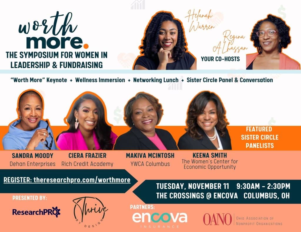 Our keynote speaker and CEO of ResearchPRO, Regina Alhassan, is a internationally-acclaimed nonprofit strategist and fundraising thought leader. She will share how we as women are already philanthropists — and how we can reframe our role in funding and fueling the causes we believe in. You’ll leave with a renewed sense of agency and tools to mobilize your philanthropy.